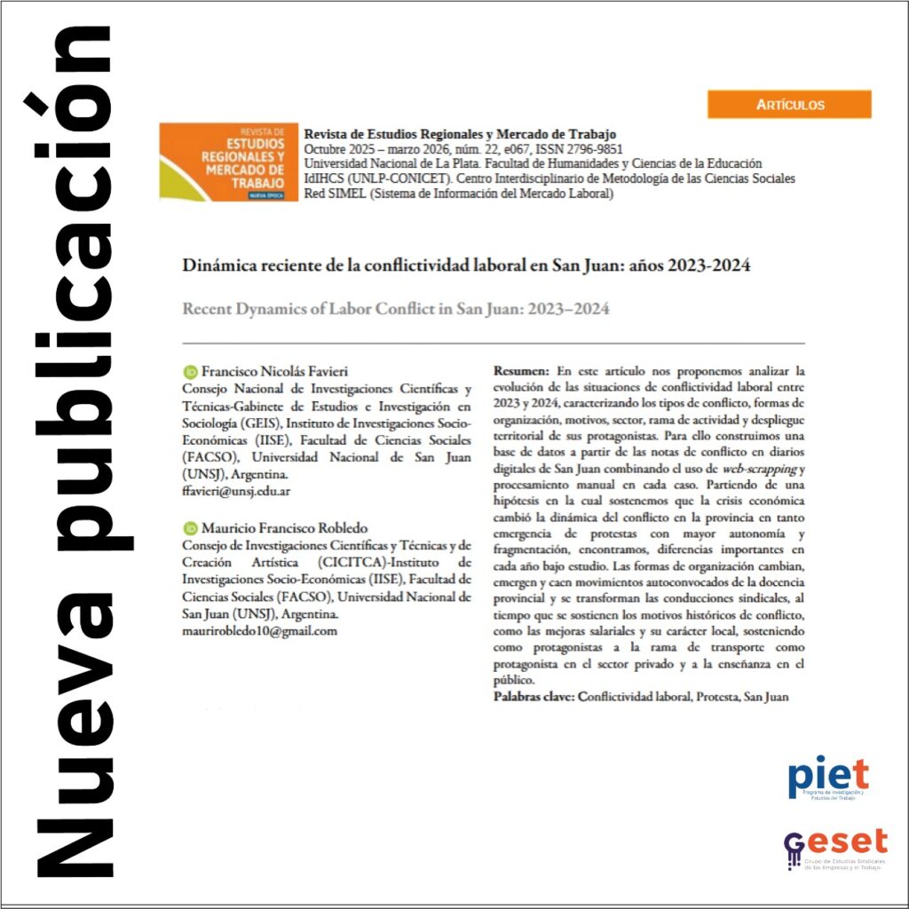 📘 Nueva publicación “La Sociología del Trabajo en San Juan, Argentina (1971-2024)” por Francisco Nicolás Favieri, Sara Mabel Valenzuela y Susana Giménez Herrero