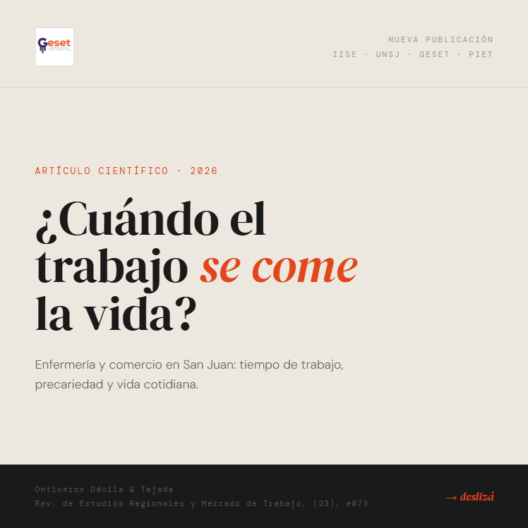 El último artículo publicado en la Revista de Estudios Regionales y Mercado de Trabajo de la Red SIMEL por nuestras compañeras Belén Ontiveros Dávila y Carolina Tejada explora cómo la organización del tiempo de trabajo afecta la vida cotidiana — y lo que encontró no sorprende a quienes lo viven, pero es urgente decirlo en voz alta.